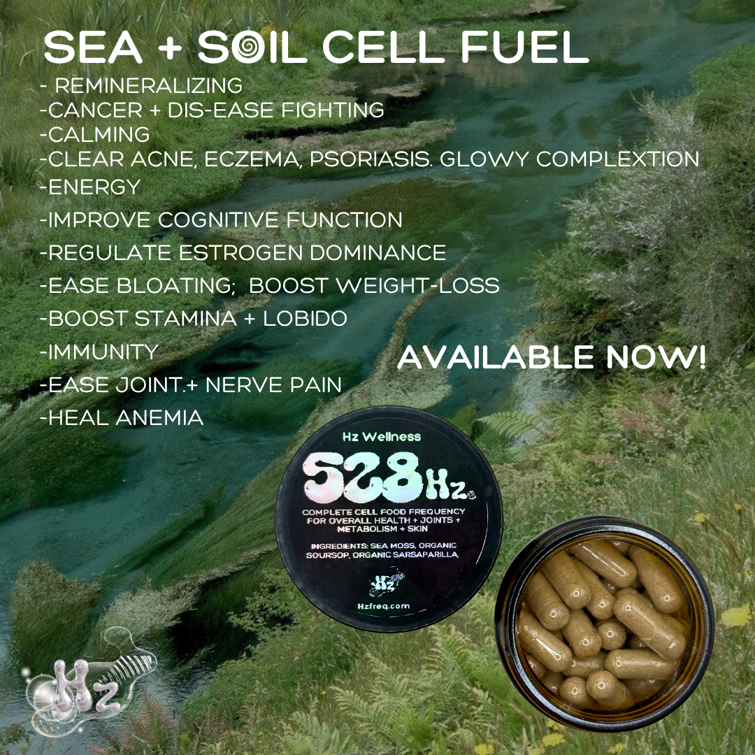 Vibrate higher with our sea + soil cell-fuel blend, the OG multivitamin. Mineral packed sea moss to repair and fuel; hydrating + healing the thyroid, skin, as well as connective tissue. Sarsaparilla wOrks as a natural binder and blood cleaner, encouraging the body to bind and ditect toxins, heavy metals, + excess hormones out through the liver, kidneys, and lymphatic system. Sarsaparilla has traditionally been used by Caribbean and Indigenous healers to release stagnation that can show up as acne, bloating, sleepiness, joint pain, skin conditions, PMS, slowed digestion & more. Soursop Leaf completes the blend wit’s its soothing abilities; reducing inflammation, calming the nervous system, and protecting the liver’s detox. Together these powerful plants form a purification and re-mineralization blend containing all 102 minerals your body is made up of and loves. Engineered by Earth for root-focused healing